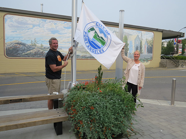 The two communities came to a twinning agreement in 2014 to support each other’s festivals: Ribfest in Esquimalt and the Dungeness Crab & Seafood Festival in Port Angeles. The Port Angeles flag will be flown at the Sports Centre throughout Ribfest weekend, September 8-10, while the Esquimalt flag will be flown in Port Angeles at the Crabfest, October 6-8.